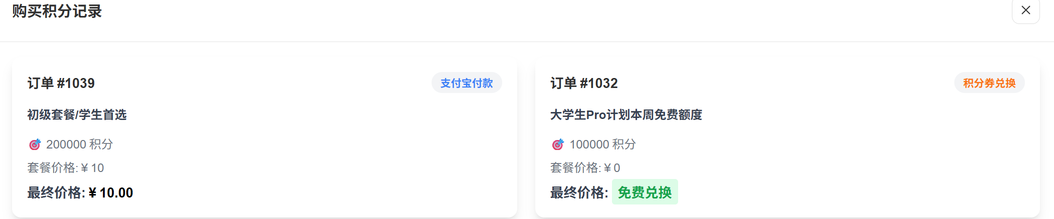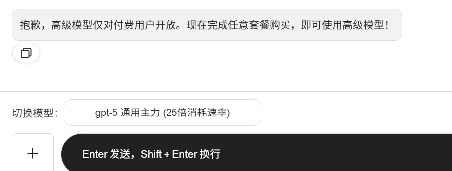 小老虎123 第一:大学生的pro计划免费版是无法使用包括GPT-4.1 旗舰通用版,GPT-5通用主力和那些4o和o1模型吗?提示我:“抱歉,高级模型仅对付费用户开放。现在完成任意套餐购买,即可使用高级模型!”当初在申请pro计划时候是说可以支持访问所有高级AI模型的,那么以上这些是属于高级模型吗?还是说付费模型? 第二:我在完成了邀请6个同学注册之后,当我付费充值余额亦或者是直接购买算力积分时无法使用应有的折扣,我看到个人中心里面显示我邀请了6个人之后是满足了8.5折的优惠力度我为什么没法使用或者说该如何使用? 第三:我购买了算力积分之后是可以使用包括GPT-4.1 旗舰通用版,GPT-5通用主力和那些4o和o1模型,那么购买的算力积分是否是永久的?购买的计算积分和pro计划每星期的10w个计算积分相互叠加时候是优先使用哪一个?!