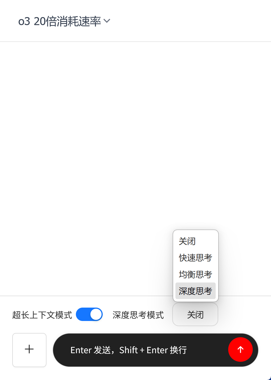 🚀 核心价值: 开启深度思考后,AI 不再只是简单回答,而是自主进行多轮次的“内心对话”和逻辑推演,并在输出结果前对论点进行严格的自我审查,最终为您提供最高质量、最有说服力的专业级分析。